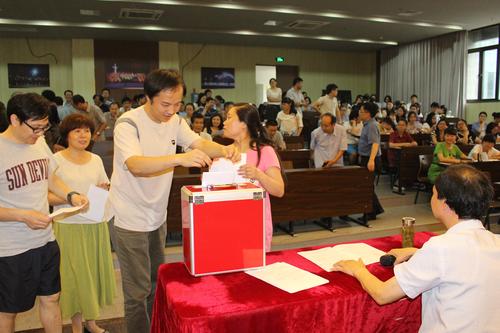 本次党员大会的主要议题是选举产生中国共产党台湾av 第二次代表大会代表。大会首先审议通过了中共杭师大第二次代表大会的选举办法、通过了大会监票、计票人名单。经过全体与会人员认真审议、投票,监票人和计票人现场唱票、计票工作,最终选举出校党代表共9名,其中在职教工党员代表7名,退休党员代表1人,学生党员代表1人。