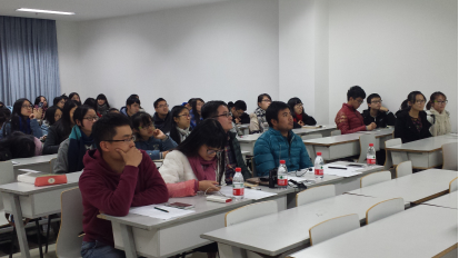 2015年11月26号晚7点,在恕园23号楼206室,我院重点培养对象答辩会正式开始。陈飞、孔祥亮、傅培恩、陈晓玲四位老师担任评委,本科生各班团支书、入党积极分子以及学生代表50余人观摩答辩。