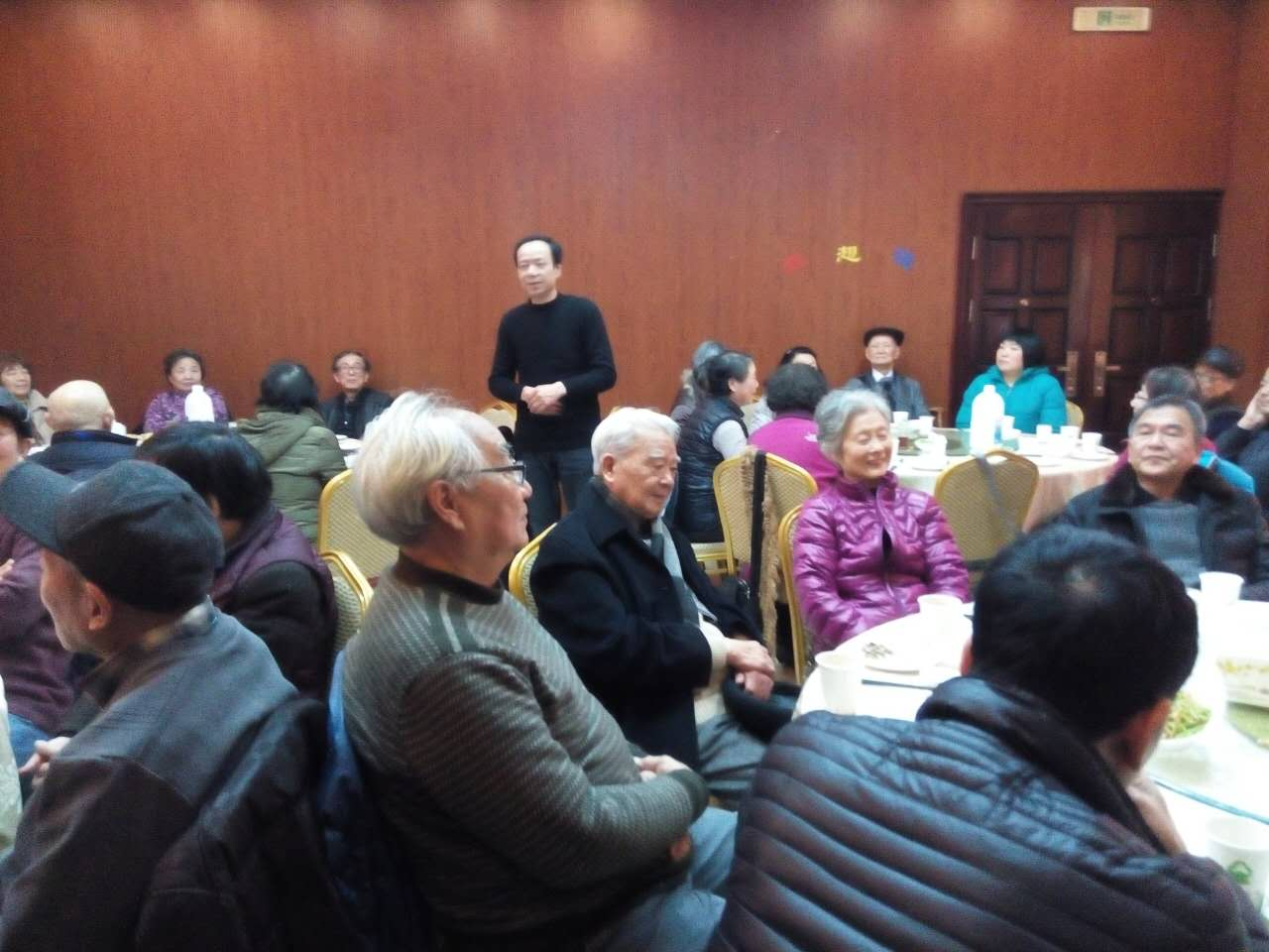 2016年1月15日中午,台湾av 组织近40位离退休教师在浙江外国语学院芳草苑内召开了情况通报会。学院党委书记吴兴农热情洋溢地向大家就学校、学院的发展情况作了介绍和通报。与会教师个个笑容满面,精神饱满,很多教师虽年事已高,但风采依然。大家皆为学校、学院的良好发展感到欣慰和振奋,纷纷为之点赞!学院党委副书记余洁、援疆的严柏炎书记也参加了会议,并向大家致以亲切的问候!会议结束后,大家依依惜别,互道珍重!纷纷表示以后还要再相聚!