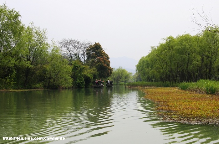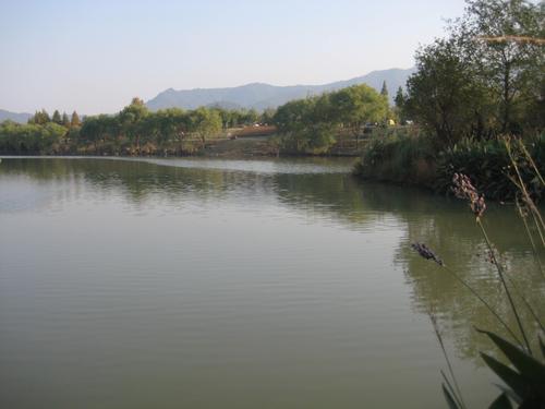 我独自在西溪湿地的东端转悠,被太阳暖暖地抚慰着,没有目标,也没找理由 。在湿地博物馆,从一层爬坡似地到达二层,一番浏览,不见有什么更新,下楼来走出没多少人的宽阔大厅,沿着台阶下到一个亲水平台,放眼望去,是一片在冬日的寒气中仍保持着青葱的层林,还有被树木染翠、寒风吹皱的一湖清水。