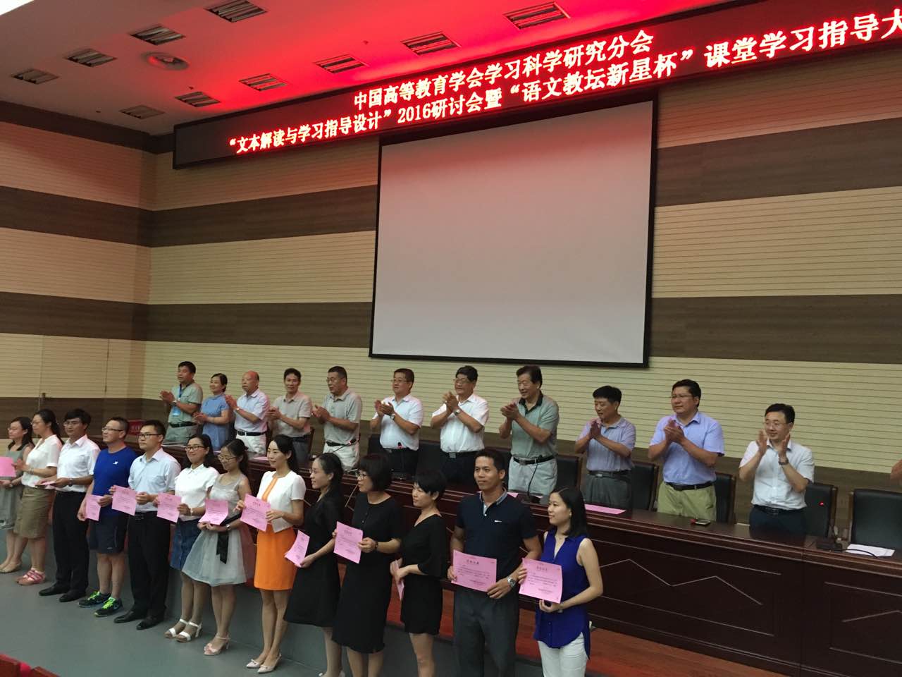 9日下午举行大会闭幕式。在闭幕式上,朱晓民教授代表大赛评审委员会对本次赛课活动进行了总结。刘永康教授代表年度科研成果评审委员会进行了评审总结。王光龙教授对学会今后的工作作了具体安排。时金芳教授致了闭幕词。大会在热烈的掌声中胜利闭幕。本次研讨会内容丰富,活动安排紧凑,以多种形式从理论和实践两个方面探讨了文本解读与学习指导设计的系列问题,会议取得圆满成功。