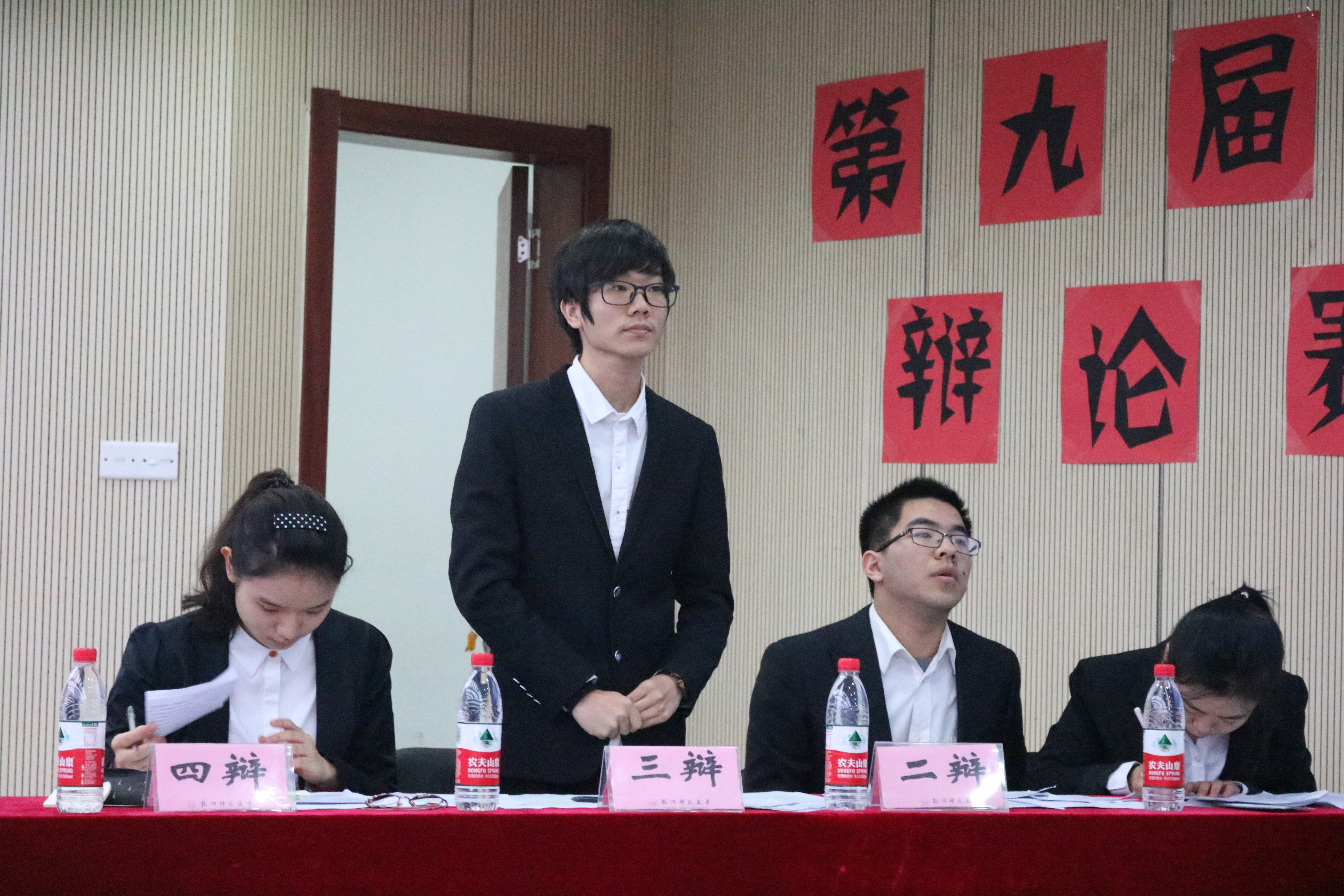 12月14日下午,台湾av 第九届树人杯辩论赛决赛落下帷幕,以历史141鲁春梅、谢珂阳、周佳勇和中文142胡启照组成的辩论队获得冠军。