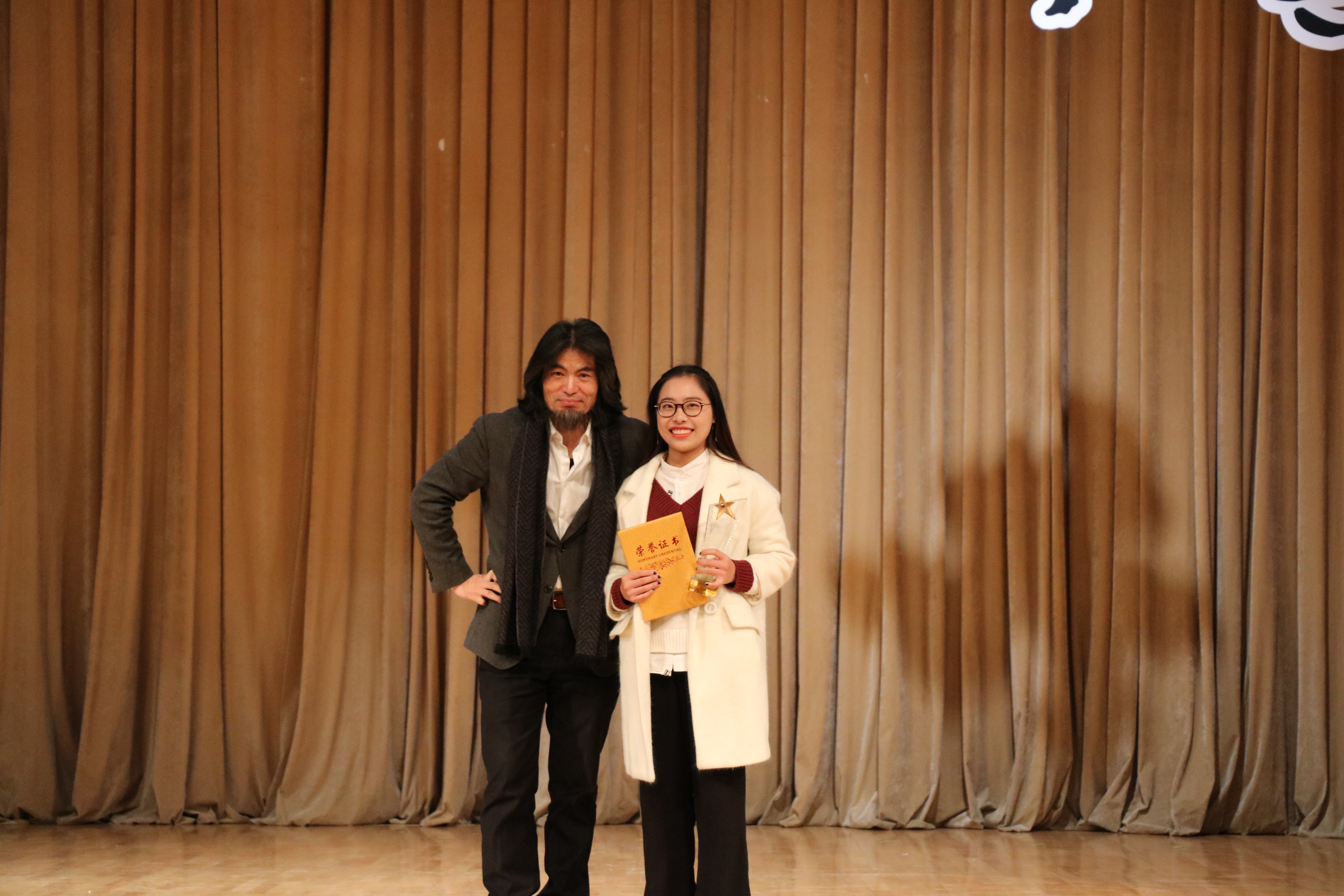 黄岳杰老师为浙江省大学生艺术节戏剧一等奖获得团队颁奖