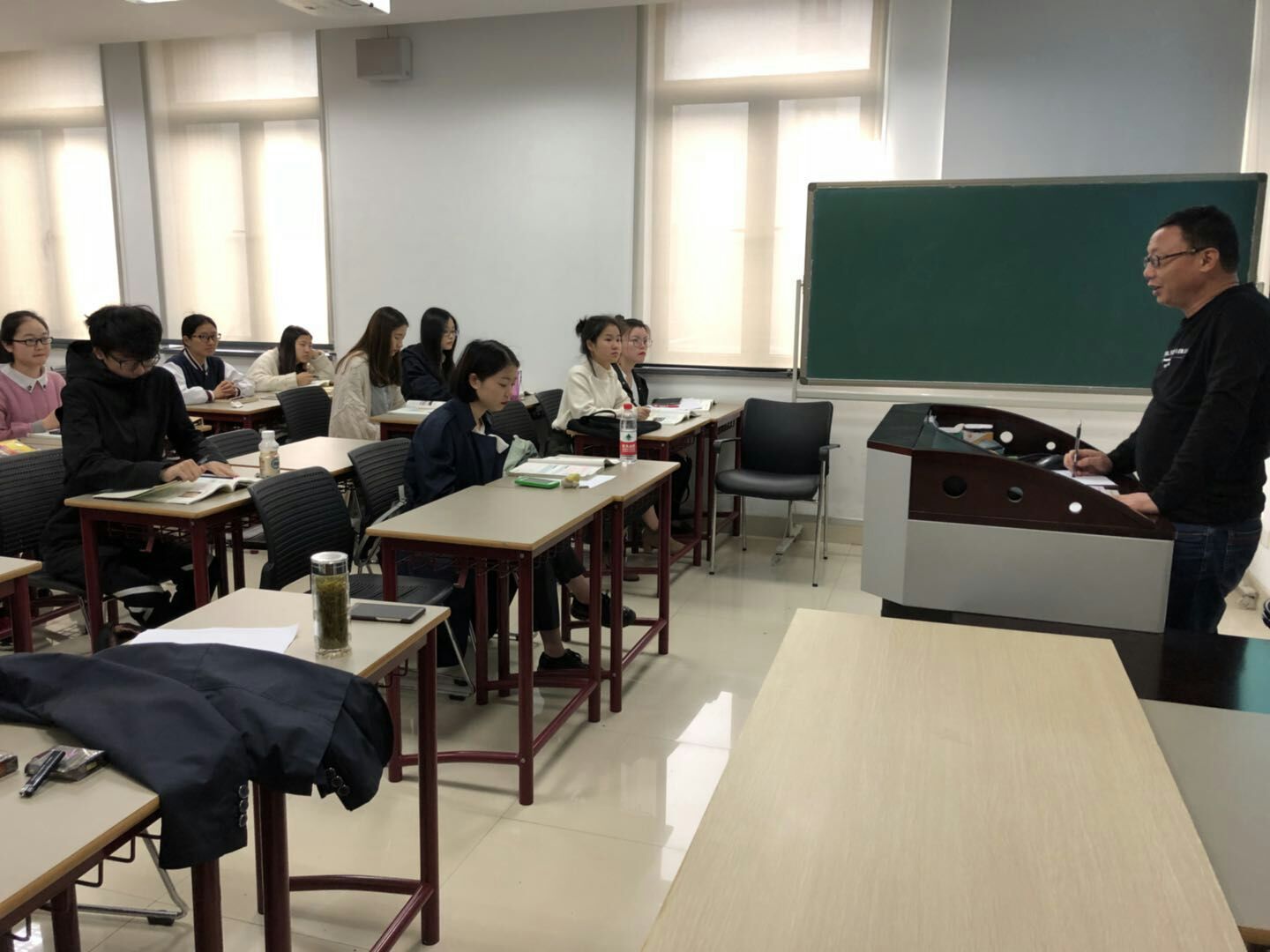 谢老师对每一位同学的教学设计、课件制作、授课状态、语言表达等都进行了详细的点评,指出了每位同学教学设计的亮点和自身的优势,并对同学在授课过程中没有梳理清楚的知识点和需要改进的地方进行了指导。谢老师采取“讲完一个评一个”的方式,及时点评,使每一位同学都能清楚地认识到自己的不足。就谢老师的指导和指出的问题,同学们都认真的进行了记录。