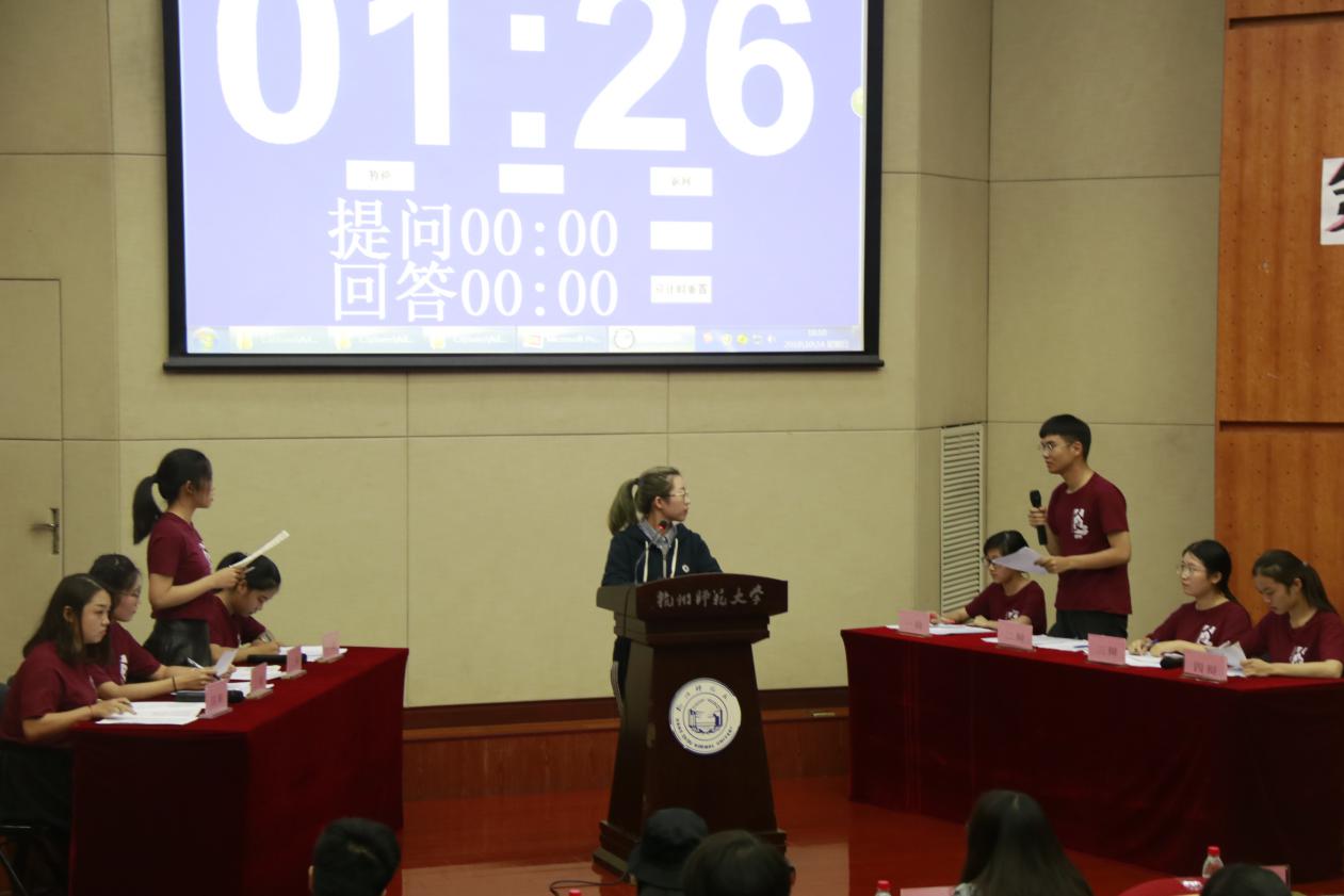 10月14日18:00,我院第十届“新生杯”辩论赛决赛于恕园7号楼200座燃起战火。校辩论队队长戚梦颖、校辩论队资深队员徐前、胡立泉受邀担任本次比赛的主评委,历史182班主任刘俊峰老师、汉教181班主任时霄老师、辅导员傅培恩老师应邀出席观赛。