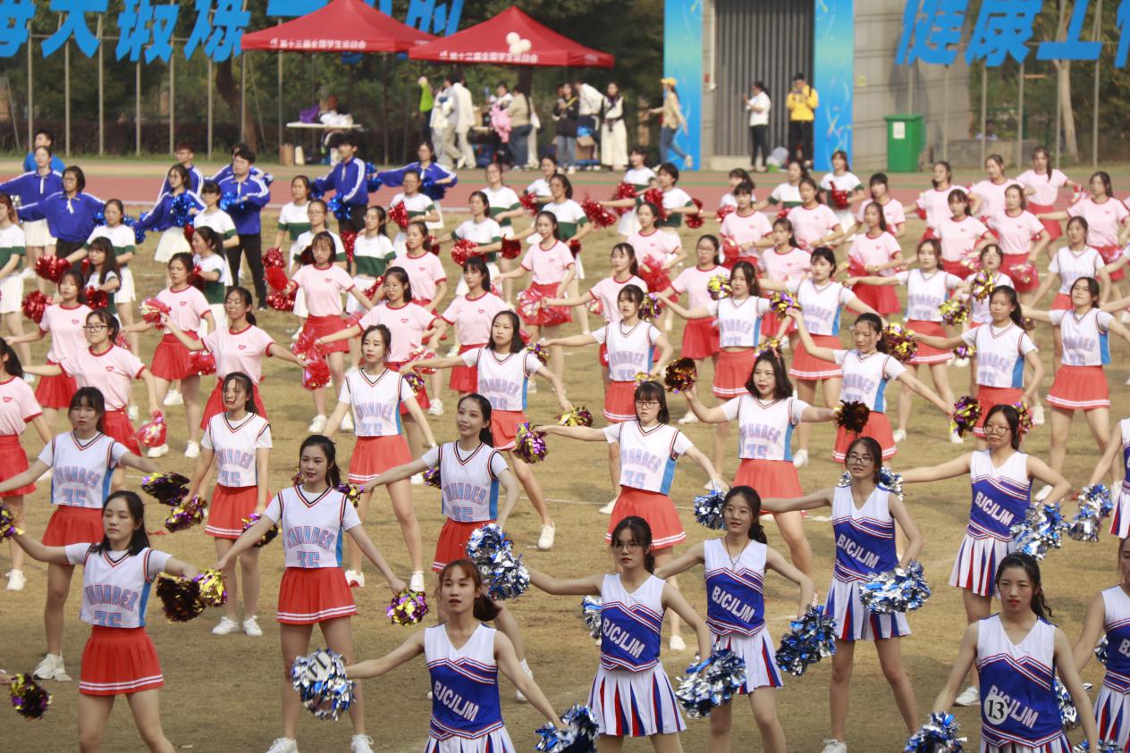 方阵有序入场后,升国旗奏国歌。校领导致辞后,运动员代表、裁判员代表进行了宣誓。随后团体操表演也在众人的欢呼声中开始了。