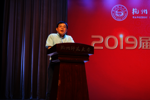 洪治纲代表学院向圆满完成学业的全体毕业生表示祝贺。他指出,告别总是感伤的,但人生总是在告别中走向新的世界。世界在你眼前,祝福在你身边。他分享了几个小故事,通过华为与美国的较量指出同学们要将眼光放高放远,让自己足够卓越,同时要具有非凡的胸怀去看待事情;通过华为启动备胎计划后各大技术人员的日夜奋斗,指出了中国人的血性、勇气与情怀,强调了人文学子应该具备情怀,不要向压力、困难低头,要像华为人一样,所有的困难都能唤起我们奋争的激情,所有的曲折都会变成我们的斗志。他以武侠小说家金庸的一句“人生就是大闹一场,然后抽身而去”真诚祝愿学子们不负青春、不负热血、不负情怀。同时他以《论扯淡》为例子,强调了追问的价值,要求同学们努力思考,只有在不断发掘思考,才能在逼近真理的道路上让人生闪耀耀眼的光芒。