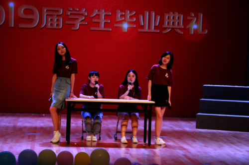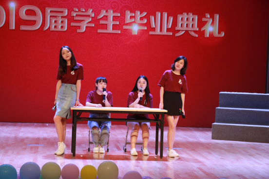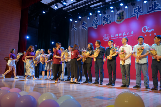 毕业典礼现场,毕业生代表向学院教师献花,感谢学院教师的辛苦培养。各毕业班班主任、辅导员老师和导师代表也发表了感言,告诉毕业生要常回学校看看。在观看完毕业视频和晚会后,典礼在共唱校歌中落下帷幕。