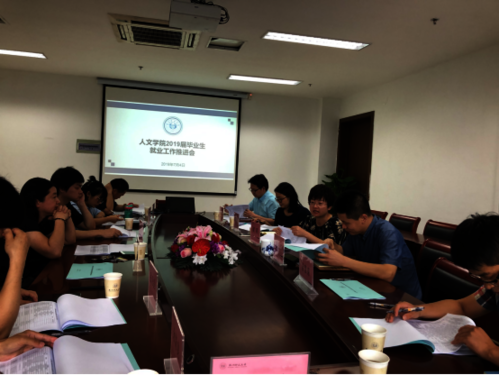 7月4日下午1点30分,台湾av 2019届学生就业工作推进会在恕园23号楼312召开。学院党委书记诸英,党委副书记管庆江,中文系副主任刘婷婷,历史系副主任刘俊峰,2019届毕业班班主任陈根民、李靓、刘欣、俞晓霞、张卫良、余清良,教务科科长傅培恩,辅导员孔祥亮、陈晓玲等参加了此次会议。