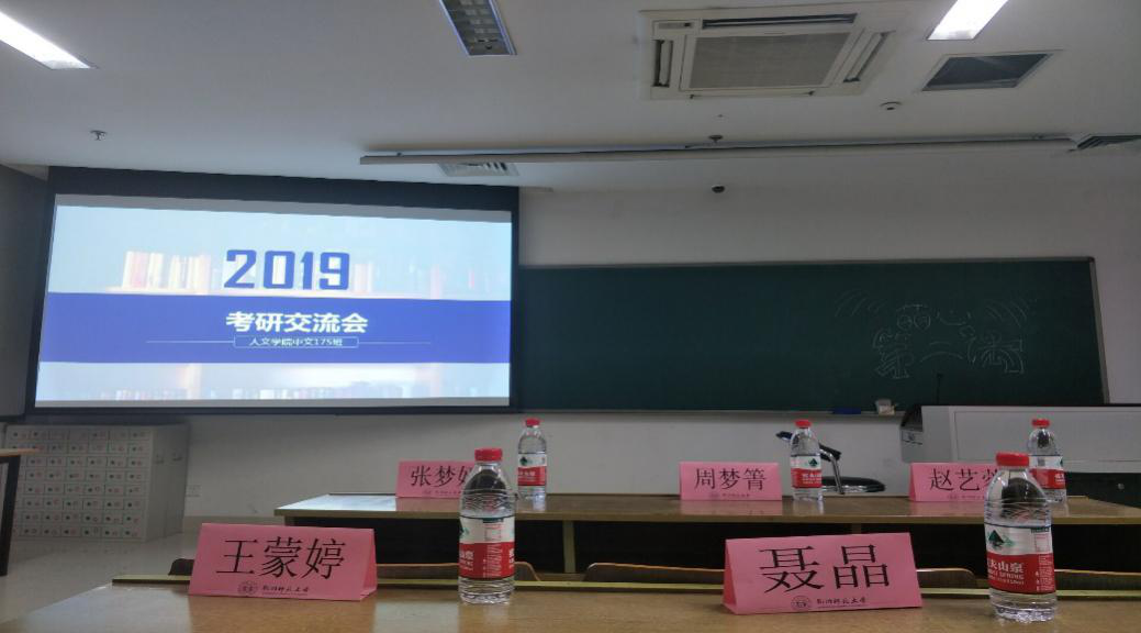 9月17日晚,中文175班“考研交流会”在恕园14号楼405室顺利举行。此次交流会由叶黎明老师策划,班长陈洁负责主持,我院语文学科教学方向研一新生:聂晶、赵艺蓉、周梦箐、张梦娅、王蒙婷担任主讲嘉宾,向同学们传授“考研秘笈”。