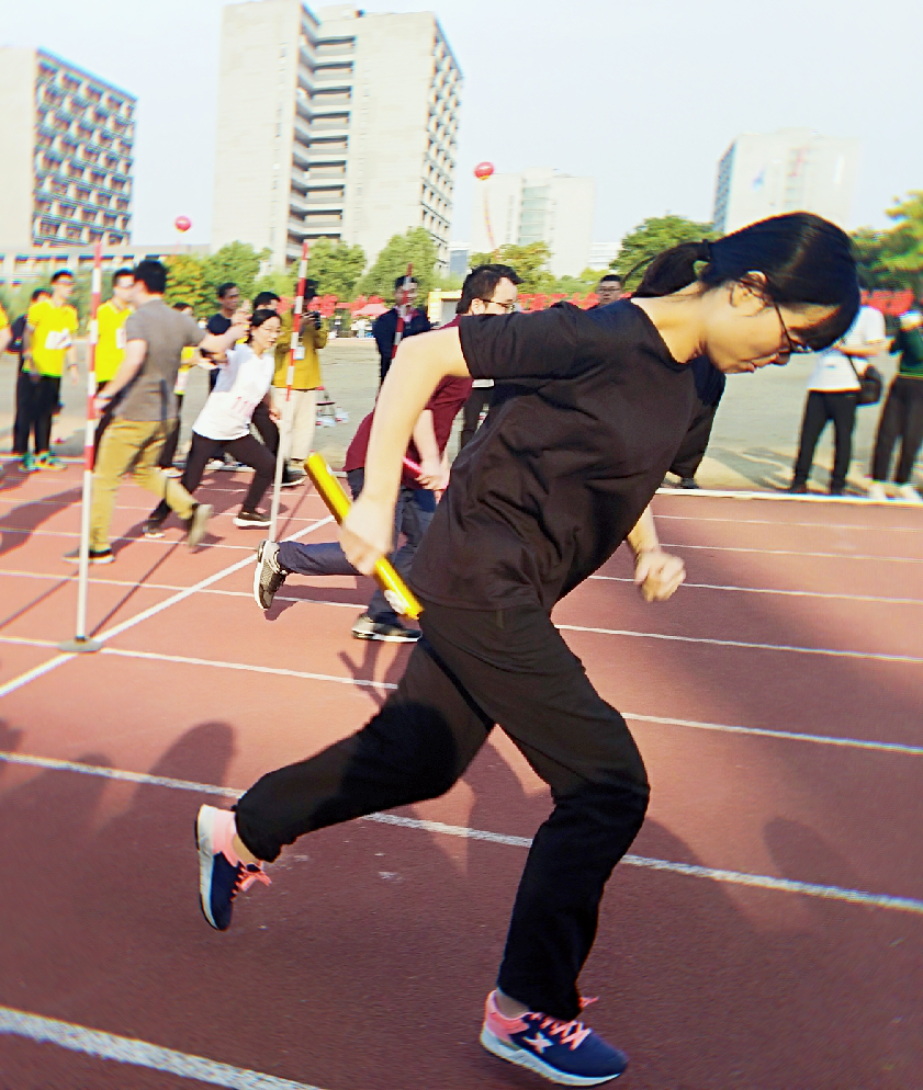 2019年10月21日,我校第40届运动会在仓前校区体育场举行,下午我院陈晓玲老师参与教工10*50迎面接力,为我院跑出了第一棒。