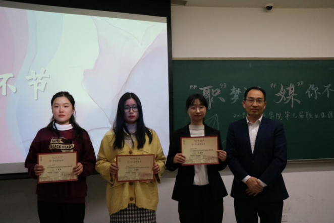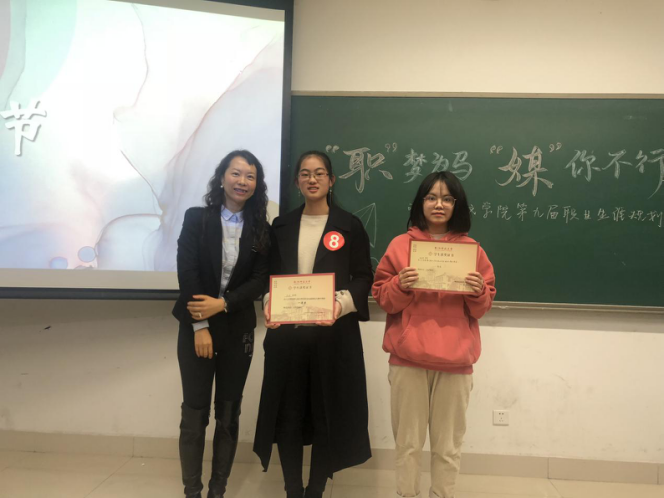 本次决赛以“‘职’梦为马,‘媒’你不行”为主题,经过初赛、复赛的选拔,八位选手脱颖而出进入决赛。决赛由选手们按抽签顺序进行10分钟的登台展示与5分钟左右的现场答辩两部分组成。决赛选手从职业市场环境、自我测评分析、不同时期规划、职业生涯风险等方面对自己的规划进行了全面而细致的讲述,展现出我院学子朝气蓬勃的青年风采。每位选手在答辩环节也得到了评委们的好评与鼓励。最终,人教181余文欣同学和中文182姜琪同学获得此次比赛一等奖;中文175陈洁同学,中文171朱骋同学,历史181姚苏芸同学获得二等奖;中文171刘佳同学,中文181陈瑶同学,中文183钦育敏同学获得三等奖。