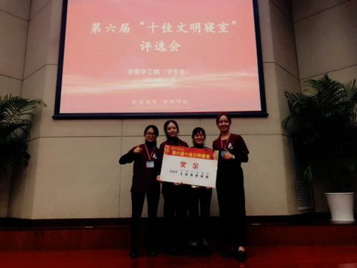 11月28日晚,台湾av 第六届 “十佳文明寝室”的评选活动在恕园七号楼200座落下帷幕,我院博文苑4-203寝室(成员为中文172陈麟、曹艳艳、陈思羽和陈思思四位同学)代表我院参加校“十佳文明寝室”评比,并荣获校“十佳”的称号。