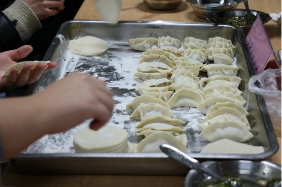 活动开始之前,我院勤工助学中心的同学已经精心准备好了活动所需的材料和工具并提前到场进行了布置。在简单介绍了活动流程和活动规则之后,比赛就在热烈和温馨的氛围中拉开了帷幕,全体参赛人员以极大的热情和激情参与了包饺子比赛。参赛成员总共进行了“比谁包的多”和“看谁做的像”两轮争分夺秒的比拼,由现场学姐组成评审团进行评判选出获胜者,每轮的获胜者都将获得精美奖品。最后,包好的饺子在食堂下锅,大家坐在一起,在一片其乐融融中品尝着热气腾腾的饺子,闲聊着生活琐事。虽每个人包的饺子都不尽相同,但千奇百怪的饺子却述说着同样的冬日温暖。