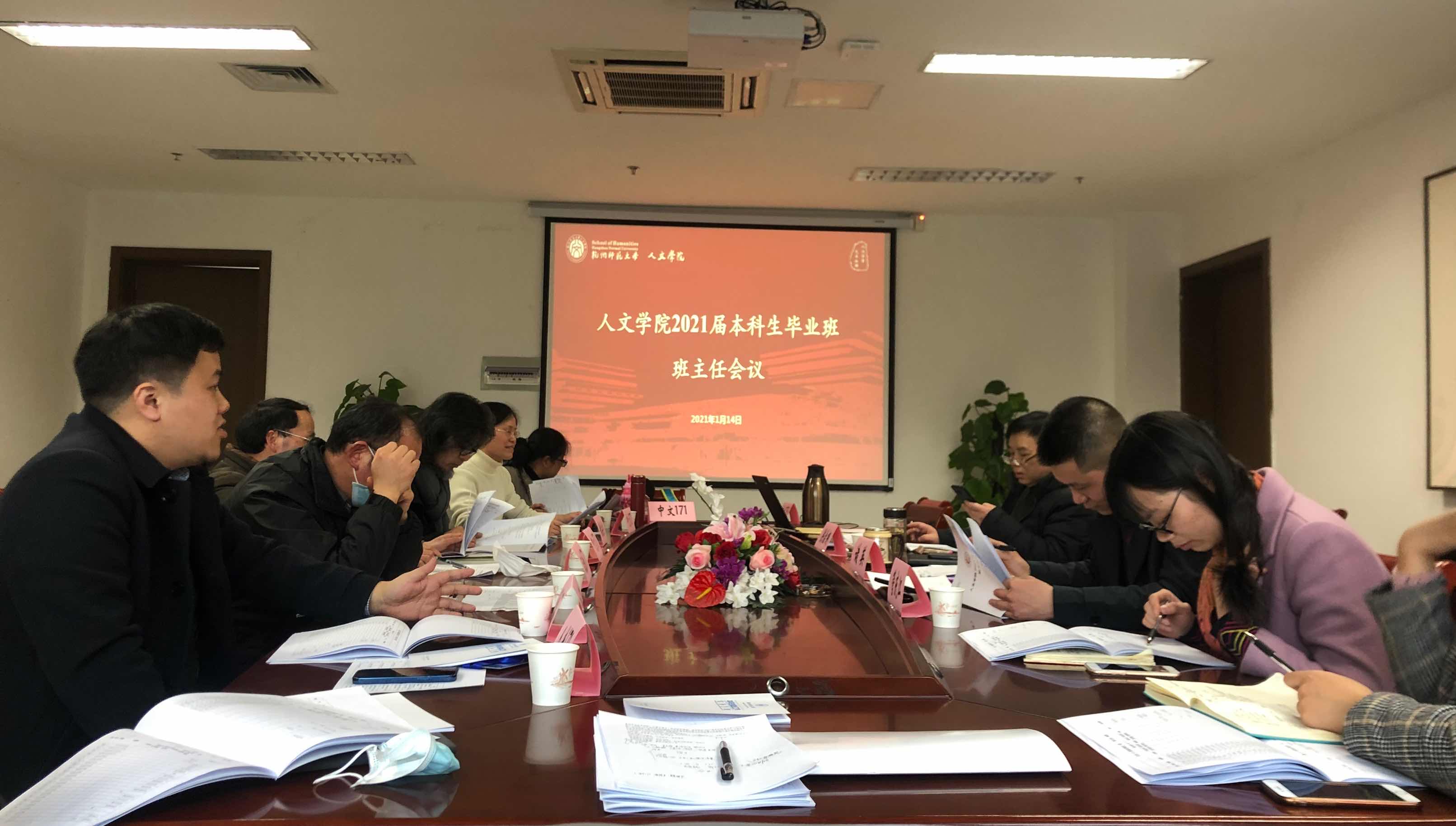 1月14日下午,台湾av 在恕园23号楼312室召开2021届本科生毕业班班主任会议,重点围绕就业工作进行研讨。学院院长洪治纲、党委书记诸英,党委副书记管庆江,2020届优秀班主任代表黄岳杰,全体2021届本科生毕业班班主任和全体辅导员参加会议。会议由管庆江主持。