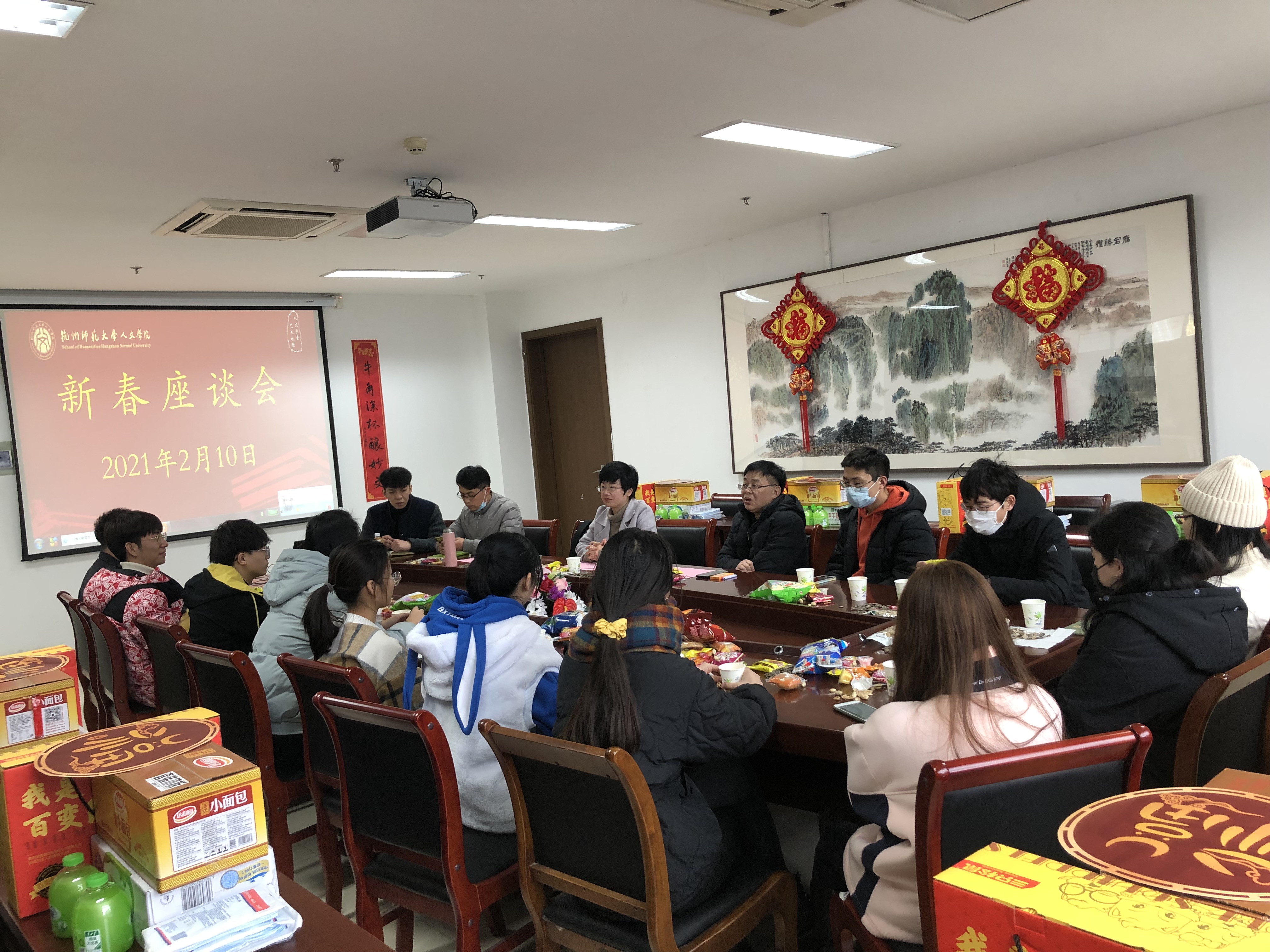 为庆祝新春佳节的到来,2月10日下午14:30分,我院在23-312举办新春座谈会。院长洪治纲,党委书记诸英,教师代表彭秋溪、李佳贤,辅导员孔祥亮、陈晓玲、刘华章以及学院全体留校师生参与了本次大会。