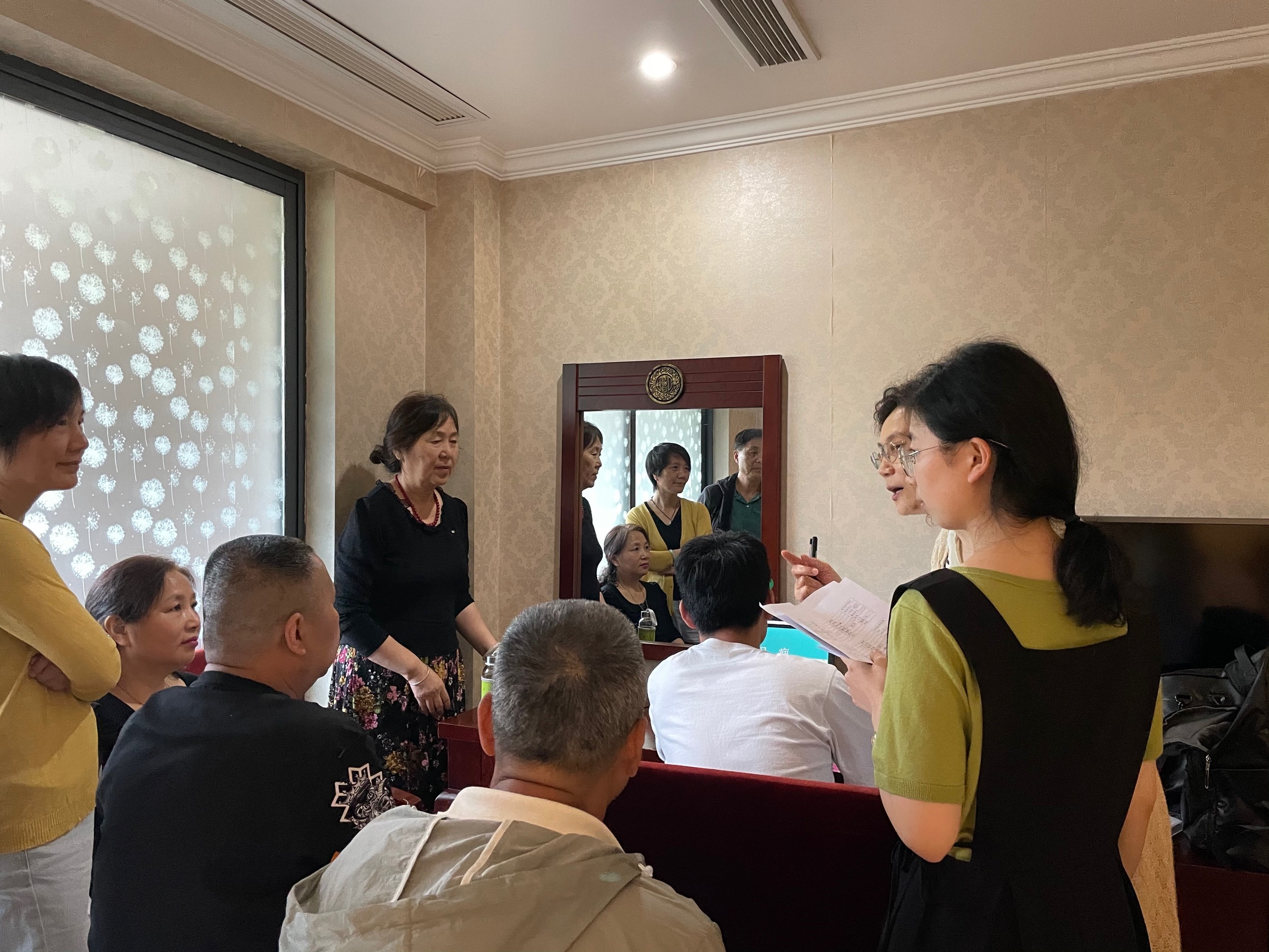 经过一天紧张的录音采样,我们深切地体会到了田野调查的不易。在准备阶段我们需要尽可能周到地考虑好所有可能的问题,预设所有可能发生的情况。但即便如此,在实地调查时,仍出现了不少意想不到的状况。比如,我们准备的声母和韵母都符合实验要求的302个两字组(包括110个备用词组),在一起试读讨论时,发现有的词语他们口语不说,例如“卑鄙”;有的词语6人读得变调不同,例如“特价4 53/5 54”;有的词语6人读得声母和声调不同,例如“白p/b果、祷d/t告、百鸭aʔ5/aʔ2”;称谓词语的连调都与一般两字组不同,例如“弟弟、姑妈”等等,我们只能临时再作调整。录音时发音人冯叔叔的声音特别响亮,我们调低了音量、移远了话筒,但还是“削波”,最后我们只能临时调整了座位,让冯叔叔离电脑稍微远些,才解决了这个问题。