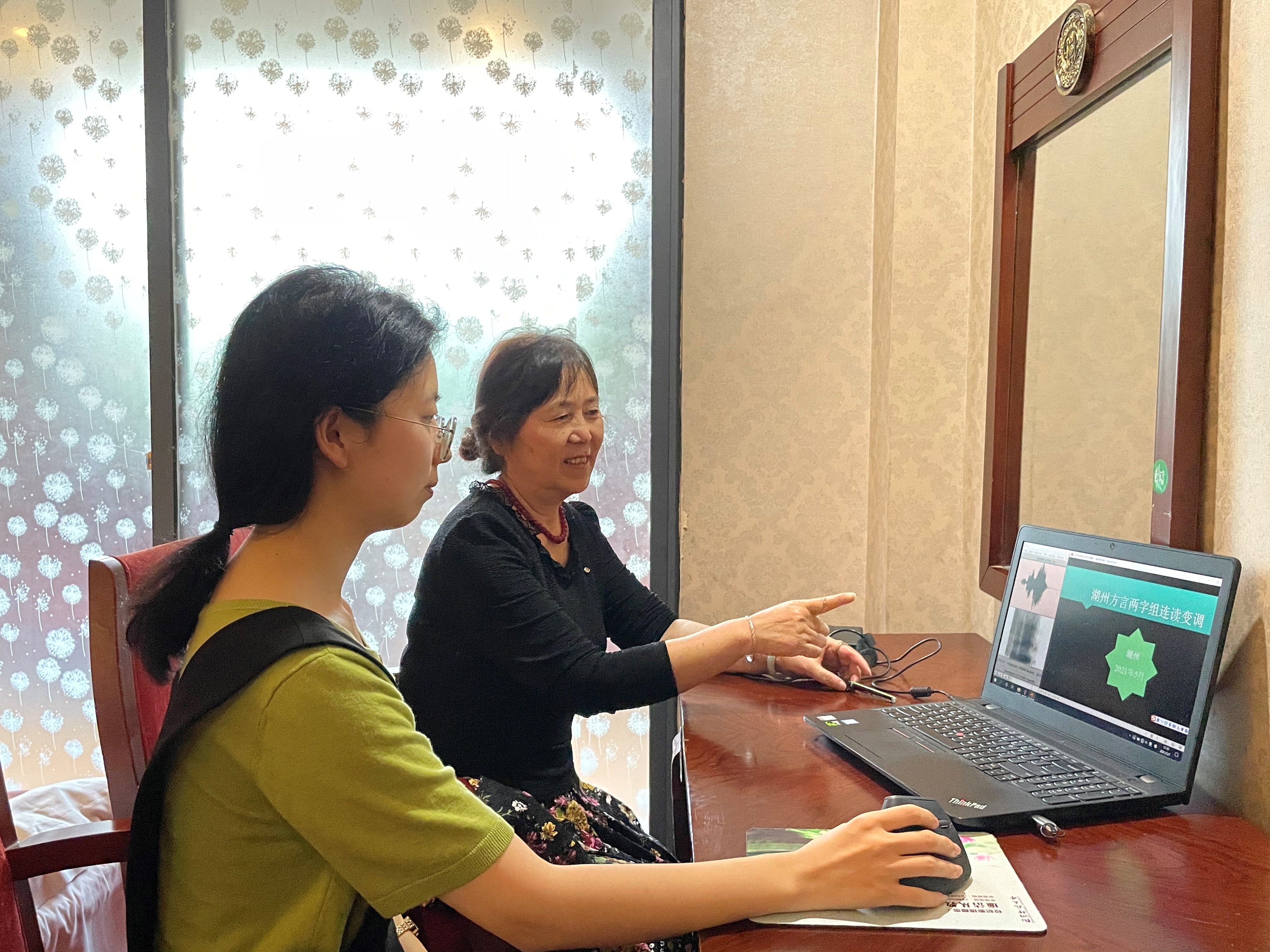 2021年5月7日,国家社科基金重大项目“20世纪中叶浙江方言调查资料的整理、研究与数据库建设”课题首席、台湾av 教授徐越老师,组织部分语言学及应用语言学专业的研究生林玲、刘娇娇、冯家俊、沈姗妮4人,驱车前往浙江湖州吴兴区,采集湖州(市区)方言两字组连读变调的语音样本。