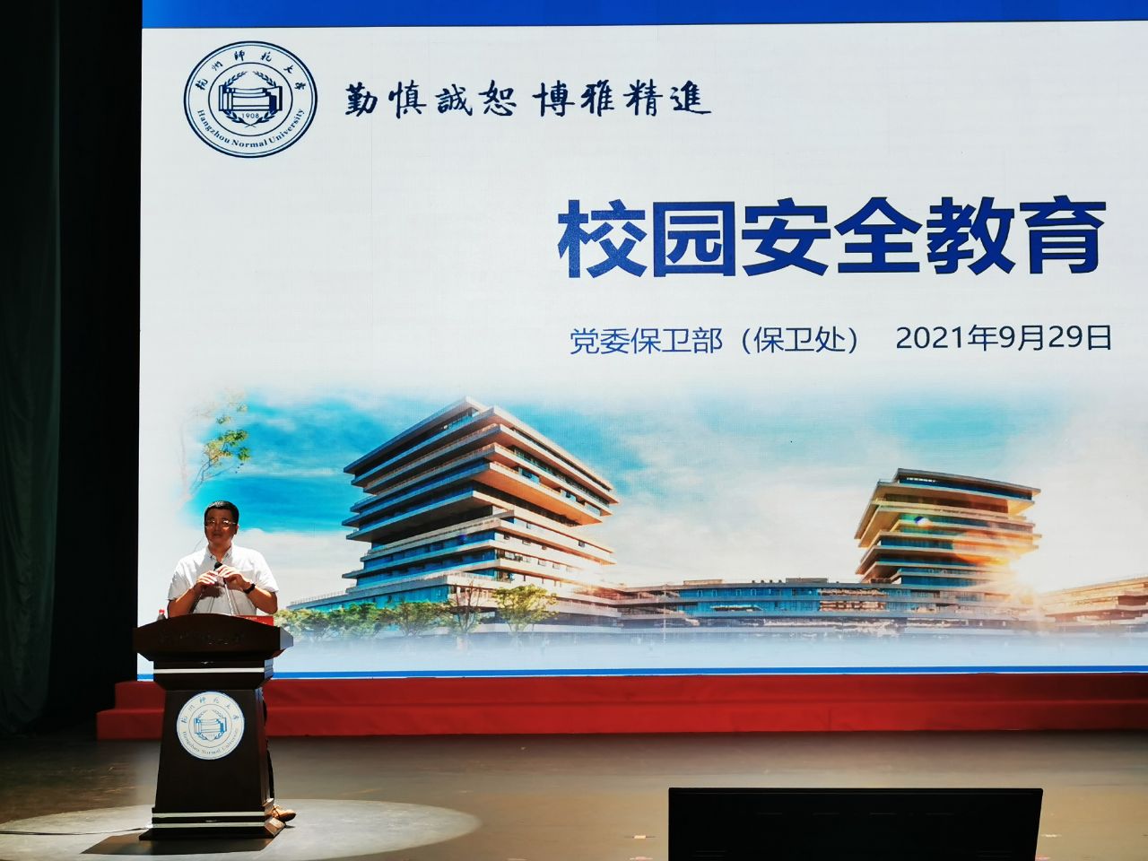 本次会议由校保卫处副处长项贤钦老师主讲,全体2021级本科新生参加会议。
