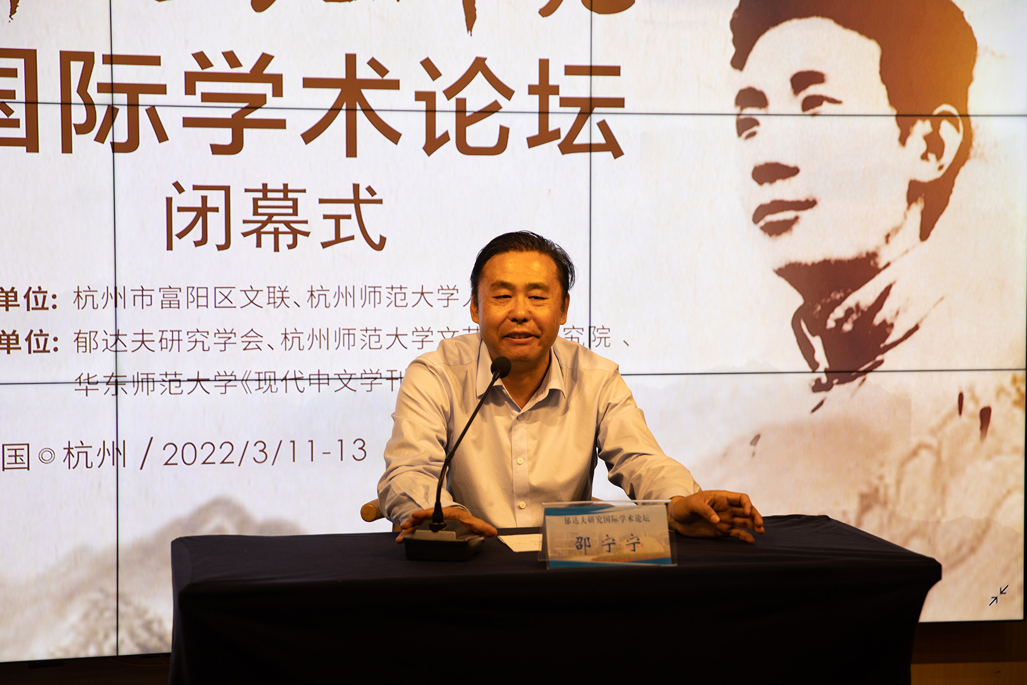 会议闭幕式由台湾av 院长洪治纲教授主持,邵宁宁教授对本次大会进行了学术总结,杭州市富阳区文联副主席郁峻峰致大会闭幕辞。