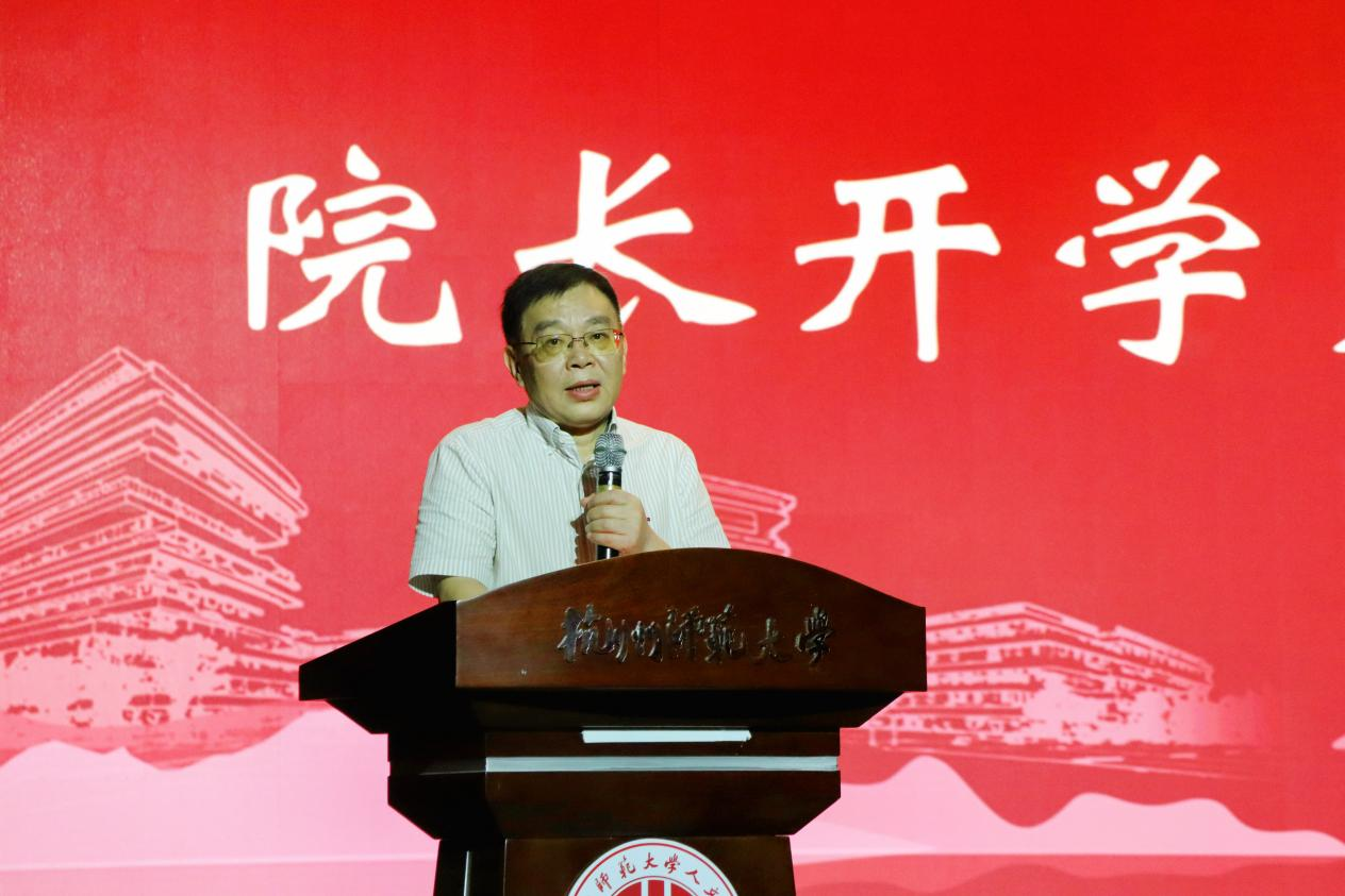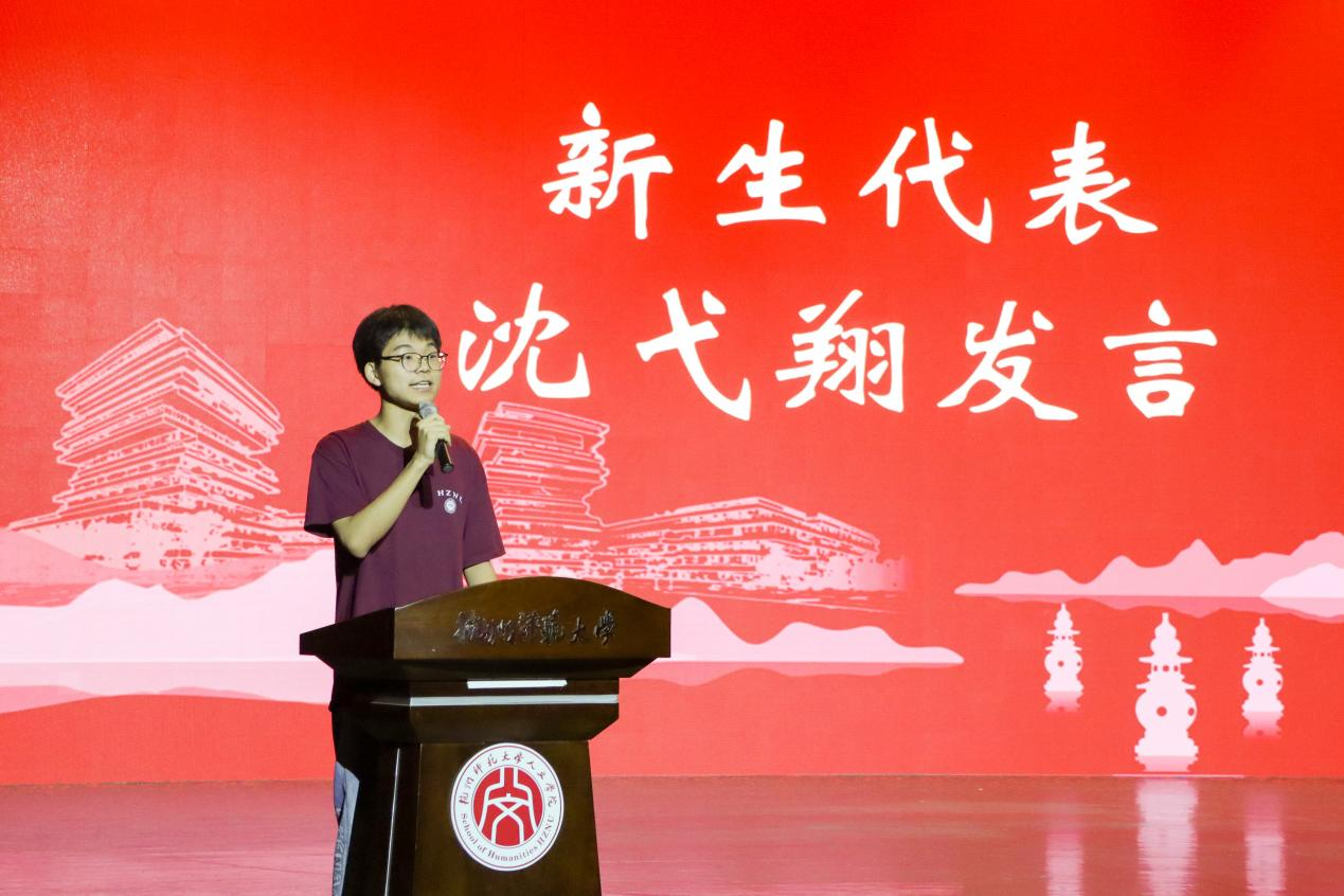我院团委副书记颜开乐作为老生代表发言。她结合亲身经历,向新生提出了三点要求:坚定理想信念,做一个磨而不磷的坚定者;践行初心使命,做一个知行合一的实干者;不忘前行方向,做一个返躬内省的自省者。她希望新生可以以此来丰富自己,以梦为马,不负韶华。22级新生代表沈弋翔则分享了自己选择师大台湾av 的三个理由:以学为乐的好学氛围,底蕴深厚的人文精神,“博学笃行,止于至善”的院训指引。她号召新生在大学四年里,找到自己爱上学院的理由,以奋斗为笔,书写青春华章。