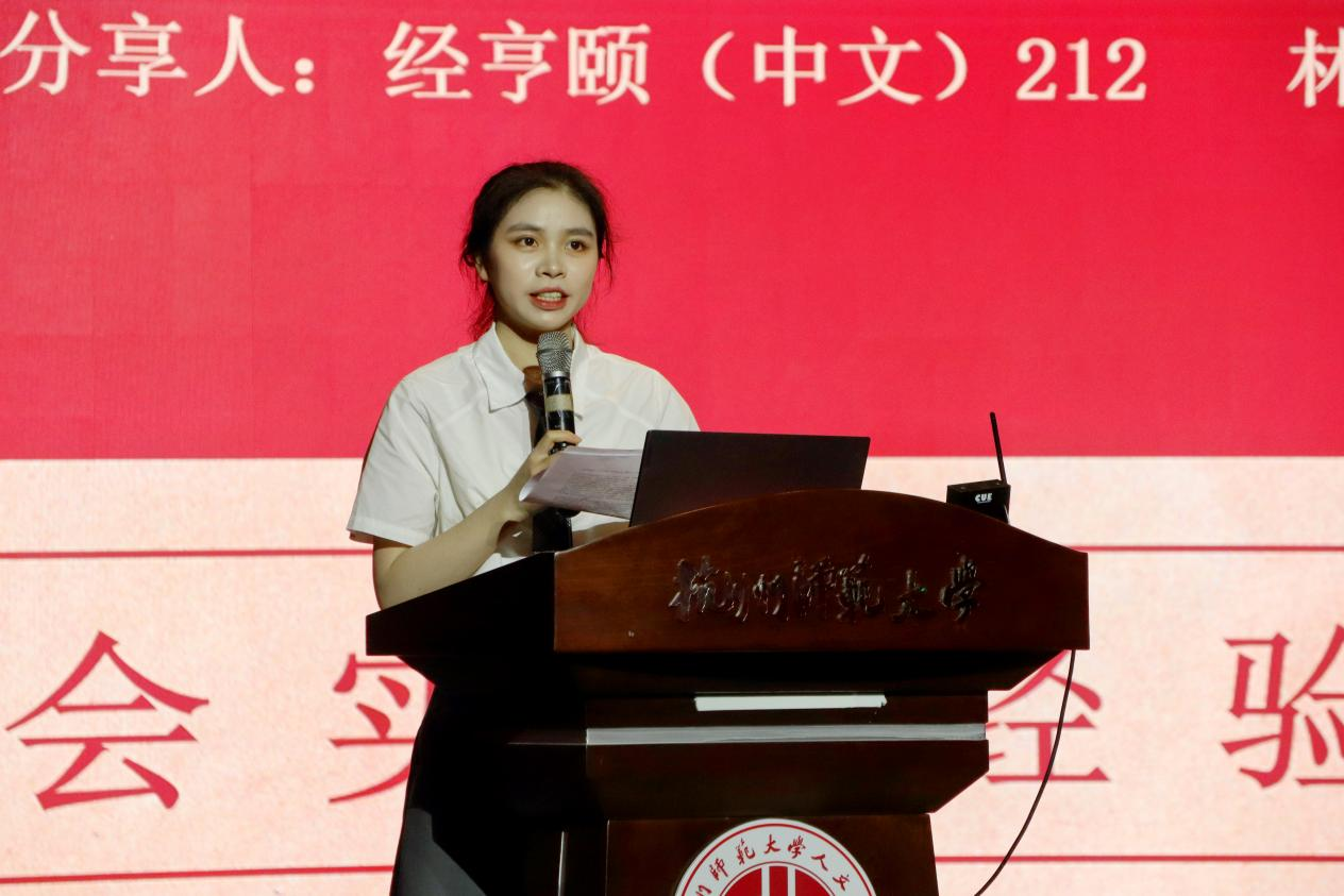 随后,来自“温暖黔行”暑期支教团的汪洋以人文学长的身份,将自己在一年大学生活中成长历程与所思所感娓娓道来。这个暑假,他与实践团队一行从杭州开赴贵州黔东南少数民族地区支教。他表示,在黔东南的社会实践确实是苦的、累的,但也正因为如此,它更是有价值的、值得去做的。“我们带去的知识、带去的思想、带去的东部风情,也深深地影响每一位孩子,使他们从茫然无措、缺乏人生规划到目标清晰、满怀憧憬。”汪洋强调,社会实践在我们成长过程中起到的重要作用,这也就是为什么我们学院历来重视实践育人工作,坚持寒暑假期广泛开展各类社会实践活动的原因。他提到,注重礼节、敢闯敢为、善于展示是社会实践者需要具备的重要品质,希望人文学子能坚定理想信念,为实践育人贡献自己的力量,