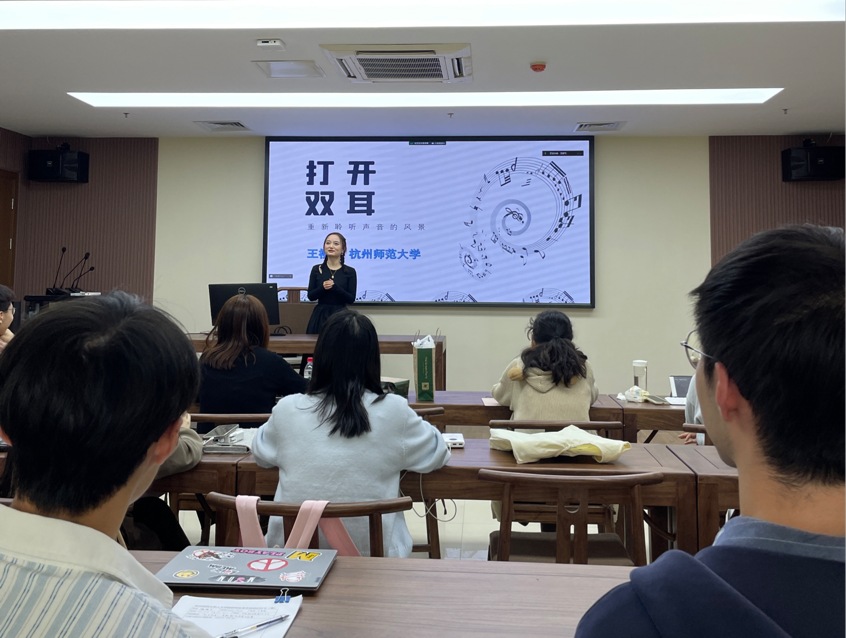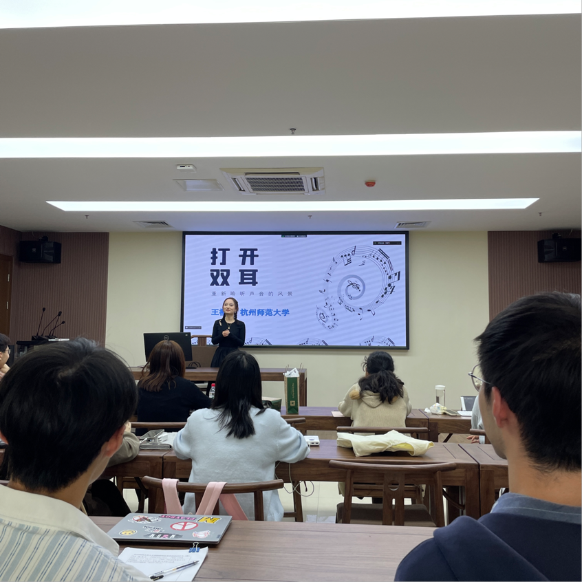 2023年10月25日下午,由台湾av 主办的“‘打开双耳’:重新聆听声音的风景”讲座在恕园23号楼314会议室举行。台湾av 讲师李佳贤主持此次讲座,台湾av 、文学批评研究所讲师王樱子就“重新聆听声音的风景”这一现代性话题及其对日常生活的影响作了专题报告。台湾av 诸多师生齐聚一堂,共同聆听了此次讲座。