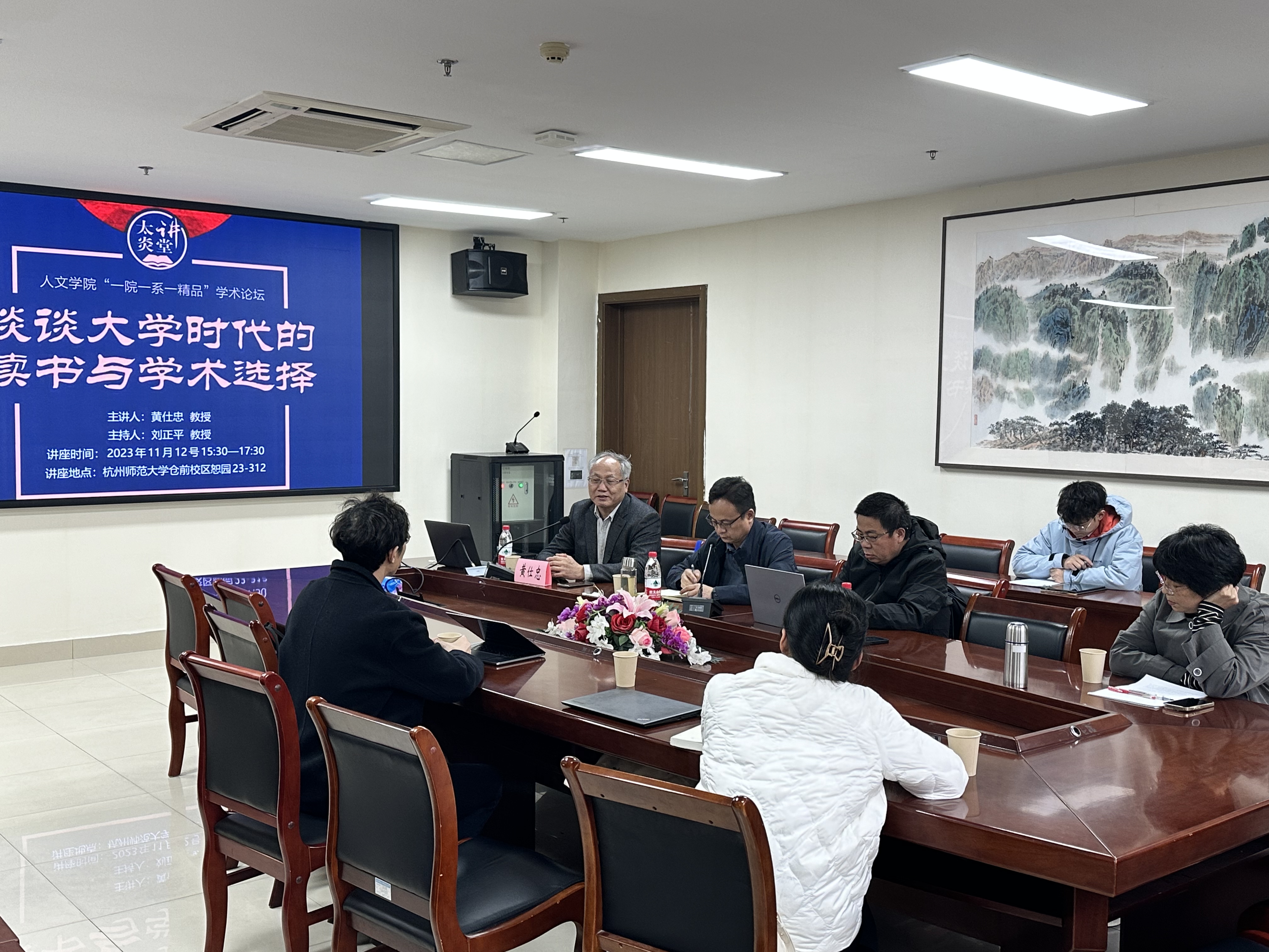 2023年11月12日下午,题为“谈谈大学时代的读书与学术选择”的学术讲座于恕园23号楼312会议室成功举行。此次讲座邀请中山大学中文系教授、中国古文献研究所所长、博士生导师、《戏曲与俗文学研究》主编黄仕忠教授主讲,我院刘正平教授致开场辞并主持报告。师生齐聚,聆听黄仕忠教授求学任教生涯与科研经历的点点滴滴,体悟一代人的学问与读书方式。