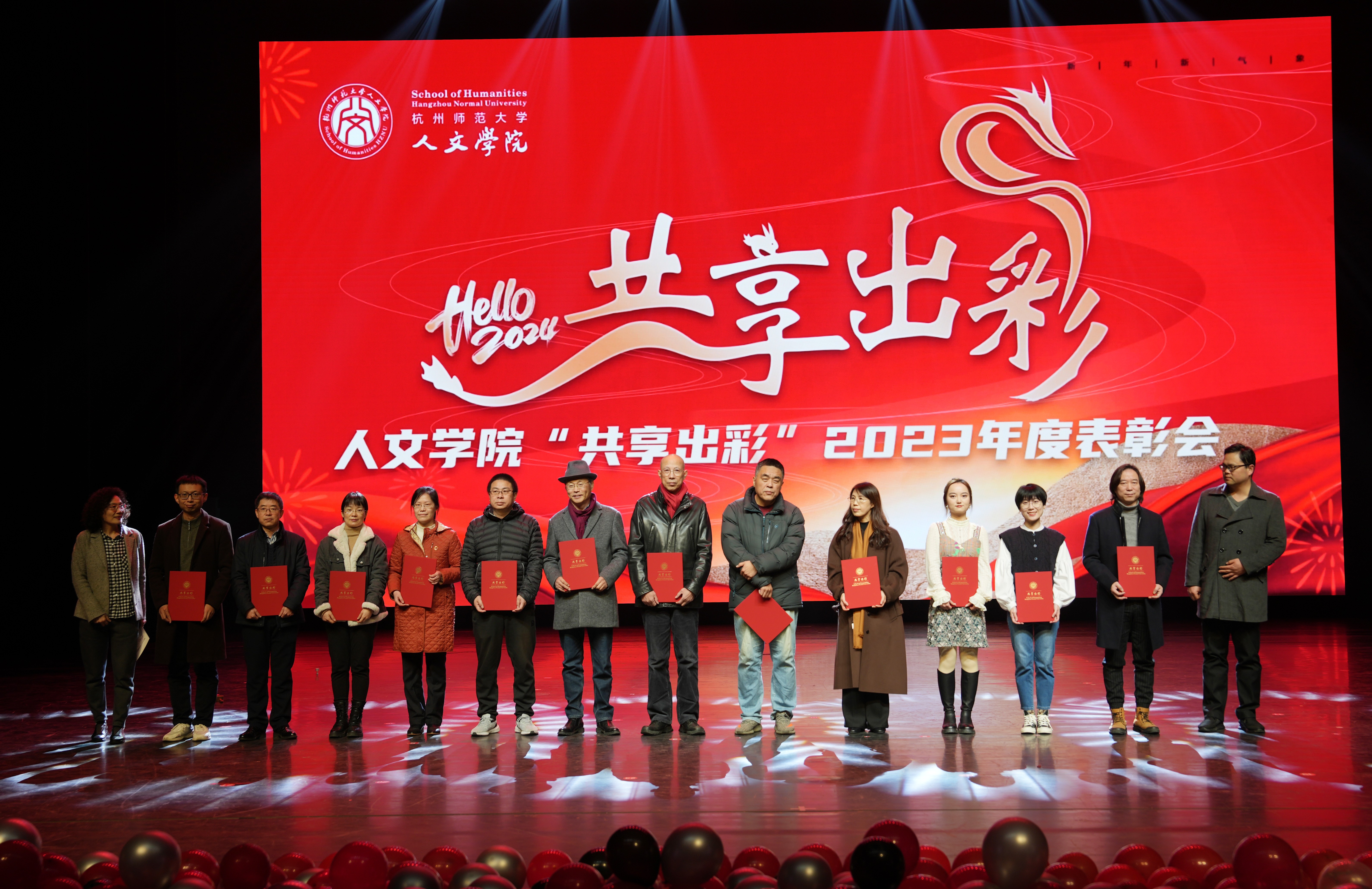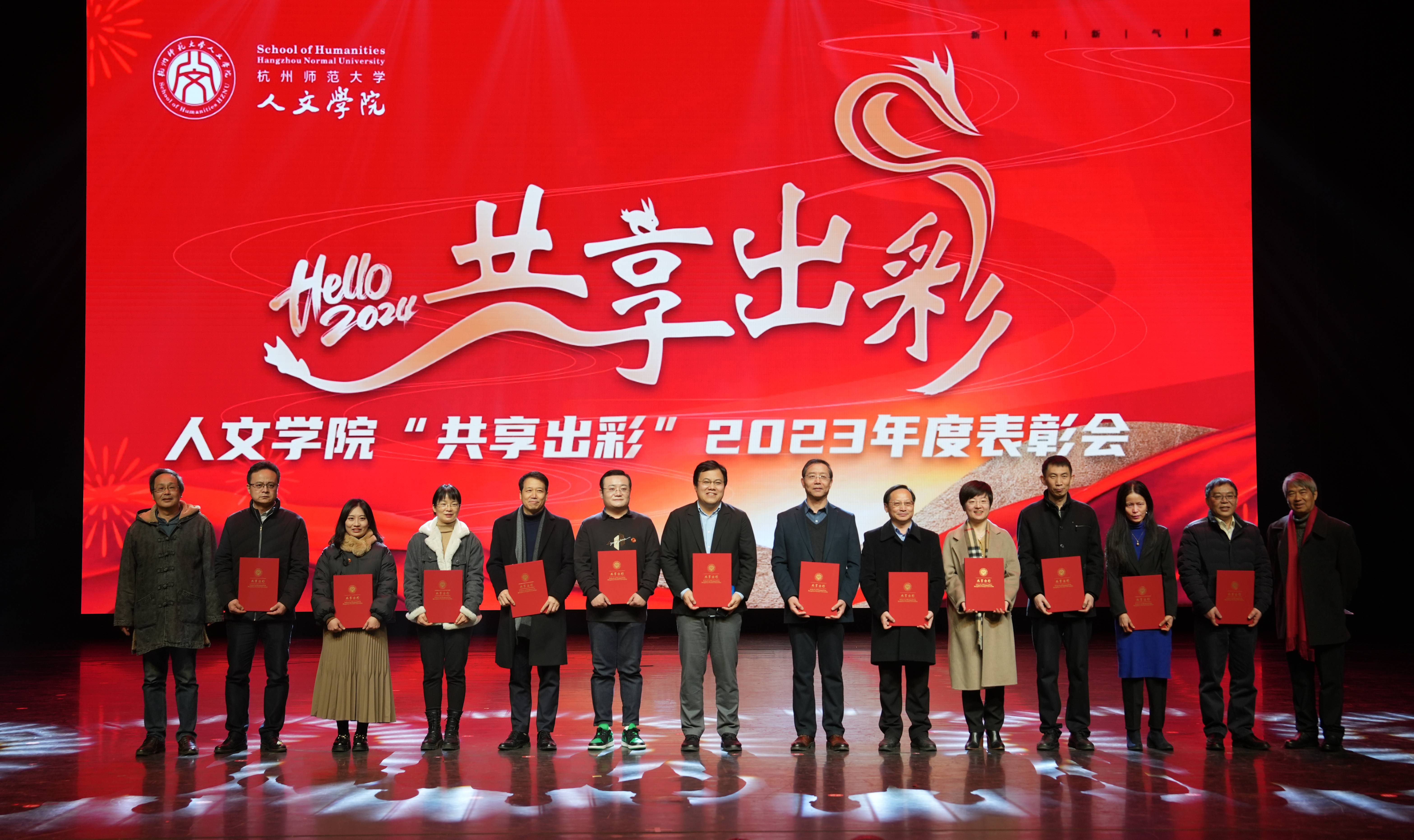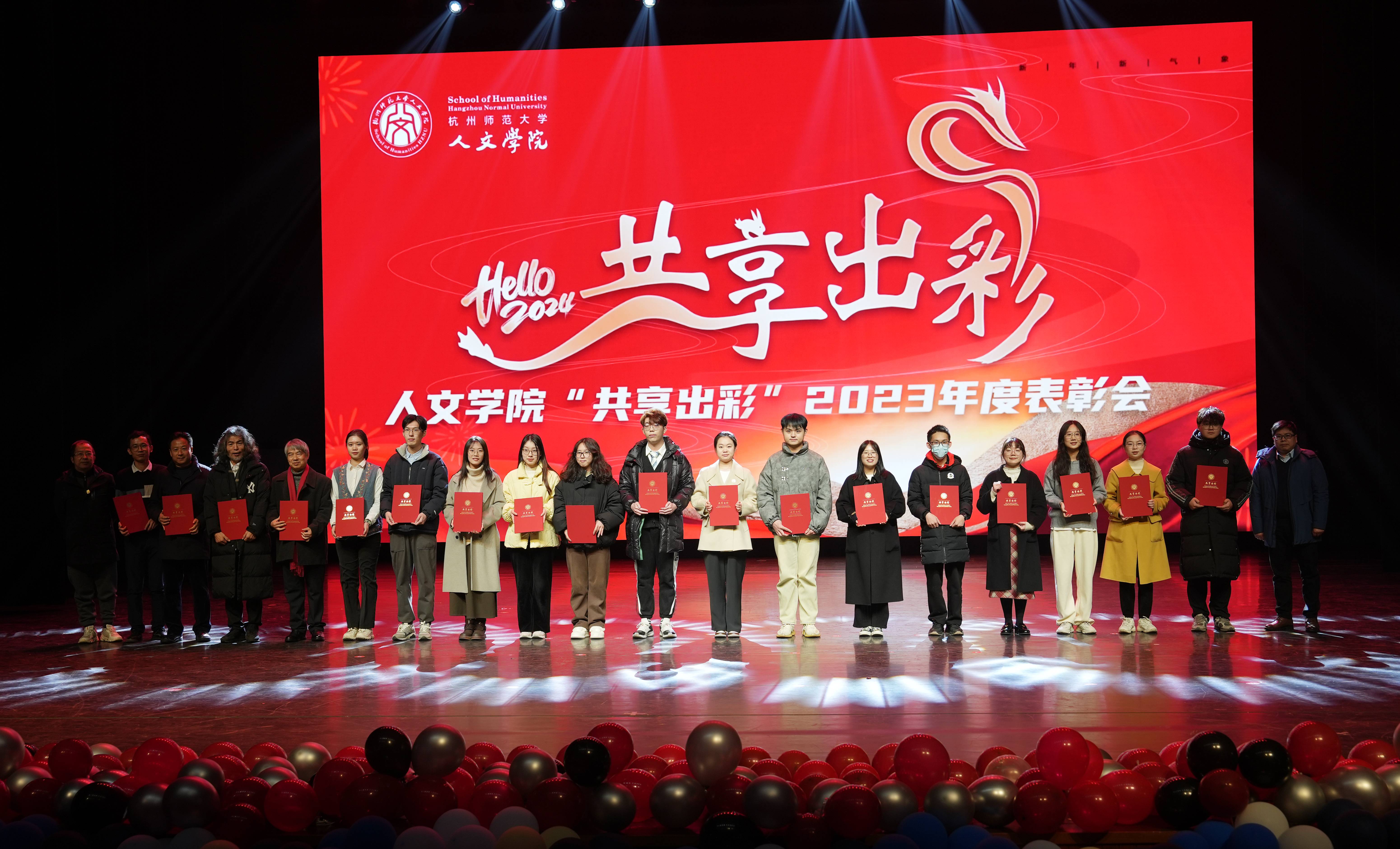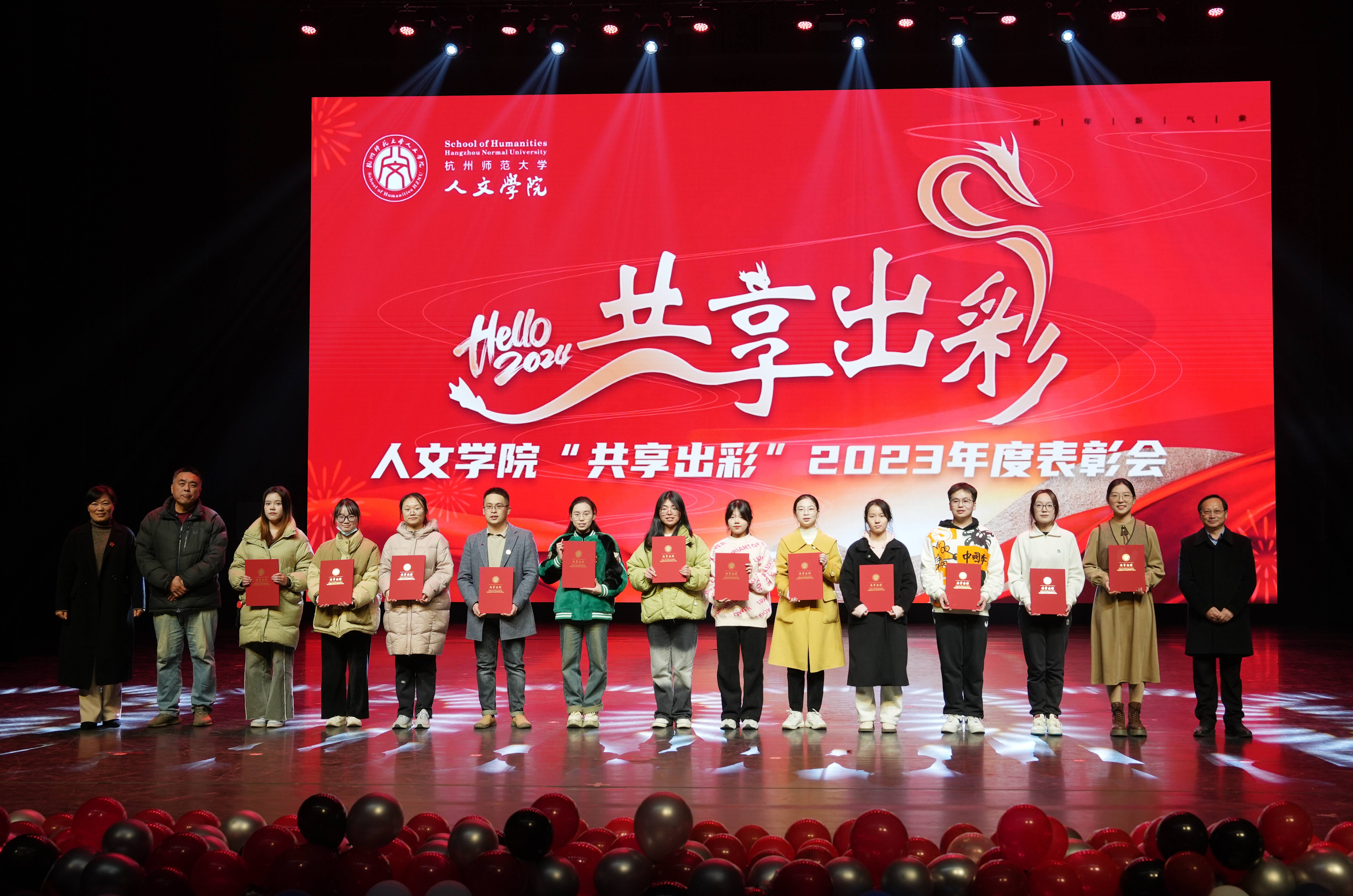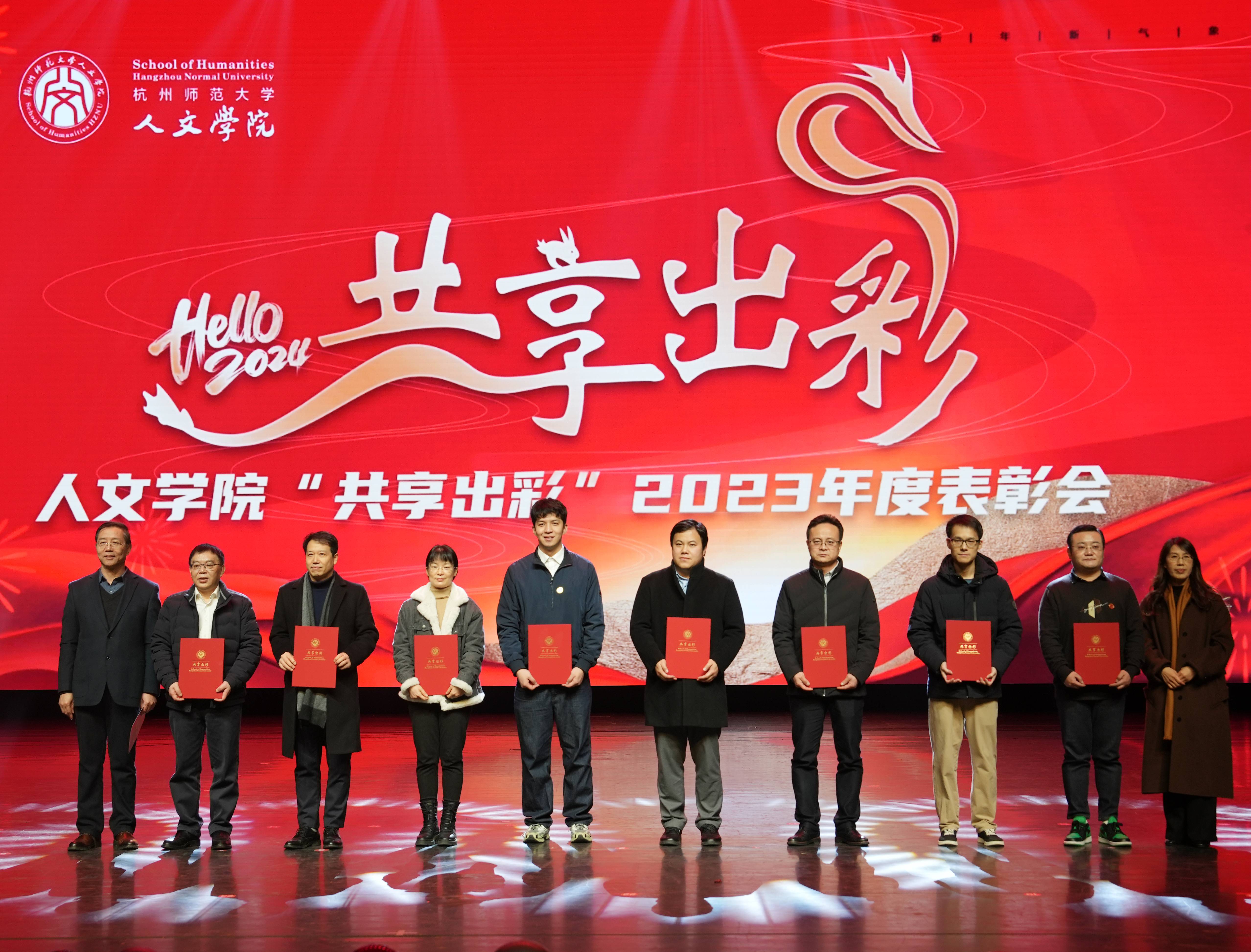 大会在师生合唱开场歌曲《是老师是学生》中拉开序幕。表彰大会分奋进人文篇(教育教学类荣誉)、创新人文篇(学术科研类荣誉)和聚力人文篇(综合育人类荣誉)三个环节,对2020年至2023年之间的获奖代表进行表彰。在奋进人文篇,主要表彰国家级一流课程、教育部产学合作协同育人项目、省级课程思政示范课程、优秀研究生课程、省“十四五”研究生教学改革项目、省优秀研究生教学案例、省十四五首批新四科重点教材等43个奖项;在创新人文篇,主要表彰国家社科基金重大项目、中华优秀传统文化专项课题(A类)重点立项、国家社科基金重点项目、全国教育科学研究优秀成果奖、国家社科基金优秀博士论文出版项目、国家社科基金青年项目、省哲学社会科学领军人才培育课题(青年英才培育)、第二十一届哲学社会科学优秀成果奖基础研究类一等奖、第二十二届哲学社会科学优秀成果奖基础研究类二等奖、浙江文化研究工程重大项目、权威期刊上发表论文等70个奖项;在创新人文篇,主要表彰全国高校黄大年式教师团队、第三批国家语言文字推广基地、全国党建样板支部、省“三育人”先进集体、省首届思想政治工作精品项目、省师德楷模、浙江省有突出贡献中青年专家、省“之江青年社科学者”、省宣传文化五个一批青年人才、第十八届“挑战杯”全国大学生课外学术科技作品主体赛道一等奖、红色赛道三等奖,第十八届“挑战杯”大学生课外学术科技作品竞赛省级金奖、第九届省国际“互联网+”大学生创新创业大赛省银奖、第十四届浙江省大学生职业规划大赛金奖、第五届中华经典竞赛、第十六、七届师范生教学技能竞赛一等奖 、“田家炳杯”第八届全国师范院校师范生教学技能竞赛一等奖、2022年全国百强暑期社会实践团队、团中央“法治中国青春行”三下乡专项实践活动全国百强团队、大学生社会实践成果“千校千项”网络展示活动优秀项目、杭州市教育系统先进团委、杭州教育系统先进团支部、杭州教育系统优秀团员等88个奖项。