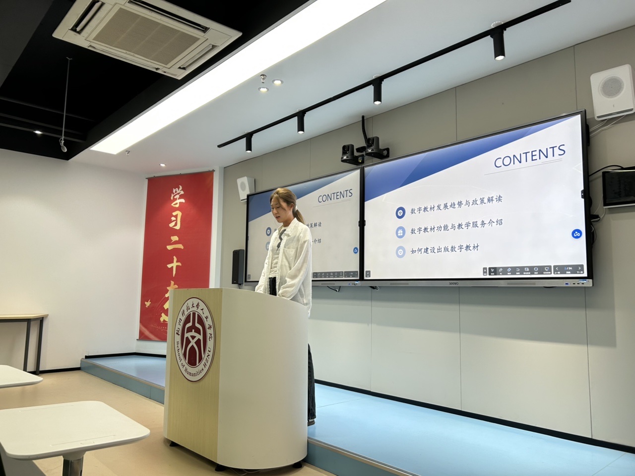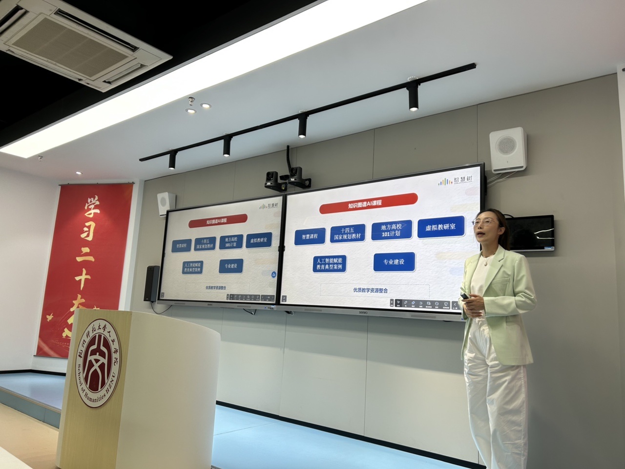 10月11日下午,我院召开智慧课程和数字教材建设交流会,聚焦智慧课程和数字教材建设,针对互联网时代人工智能赋能教学,加快推进教育现代化进行深入探讨。学院相关负责人和二十余名教师参加,并邀请智慧树负责人、浙江大学出版社负责人等作技术讲解和支持。