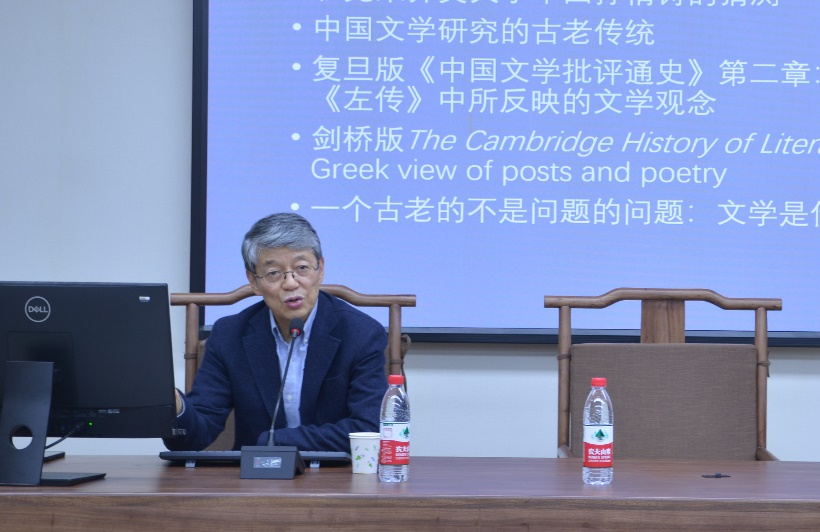 讲座开始前,杨向荣教授简要地介绍了周宪教授,与会老师和同学对周宪教授的到来表示热烈欢迎。讲座伊始,周宪教授首先从传统的视角出发,通过对比作为传统人文学科的文学研究与当代文学研究的异同,引出了文学研究“由内到外”的发展趋势。他认为,从“学科”(discipline)走向“跨学科”(interdiscipline)的过程就是研究者打破学科壁垒、沟通学科话语、创新学科范式的过程,而这一过程同时也为“文学+”提供了前提和基础。