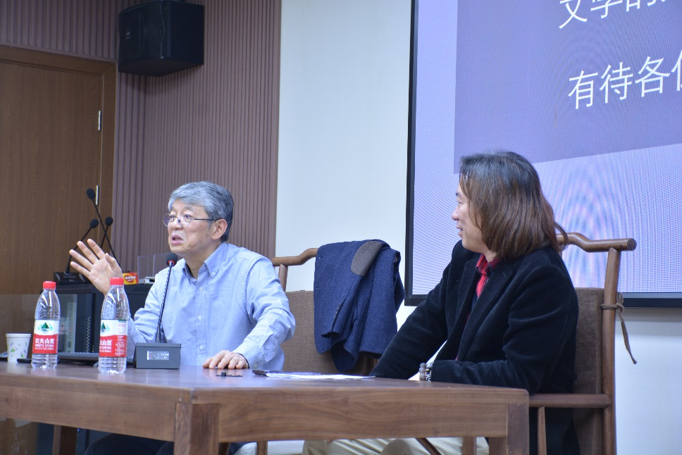 在进行宏观的展示后,周宪教授针对文学的跨媒介研究做了具体的说明与论述。他从《跨媒介性手册:文学、图像、声音、音乐》一书入手,认为文学的跨媒介研究不仅拓展了对文学、美学新特性的关系认知,还可以应对文学发展的新挑战和新问题,从而能够促进文学研究的跨学科融合,是文学研究新的生长空间。周宪教授表示,只有认清建构文学关联性这一工作的重要性,辨明知识生产的全球分工与中国文学理论的知识生产之间的关系,才能够真正拓展文学知识生产的学术生存空间,才能够科学应对人文学科的危机与科技导向的压力。而至于如何完善“文学+”,如何建构文学的关联性,周宪教授寄希望于在座的广大青年学者与年轻同学,认为文学的关联有无限可能性,有待各位研究者去不断发现和探索。